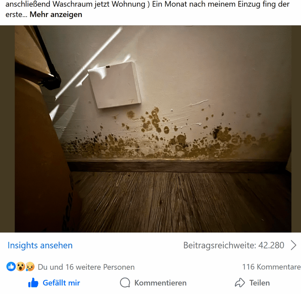 Teile gern Bilder, Beschreibungen oder Situationen aus deiner Wohnung – wir helfen dir, den Schimmel richtig einzuordnen und geeignete Maßnahmen zu finden. Mit inzwischen 9000 Mitgliedern und vielen Experten.